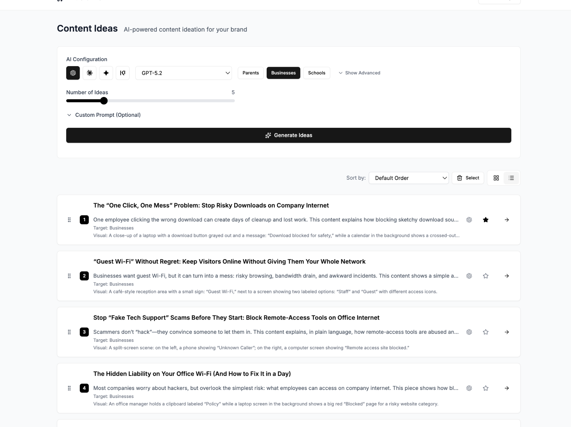 Turn a single idea into videos, images, articles, text posts, hooks, and more — automatically.